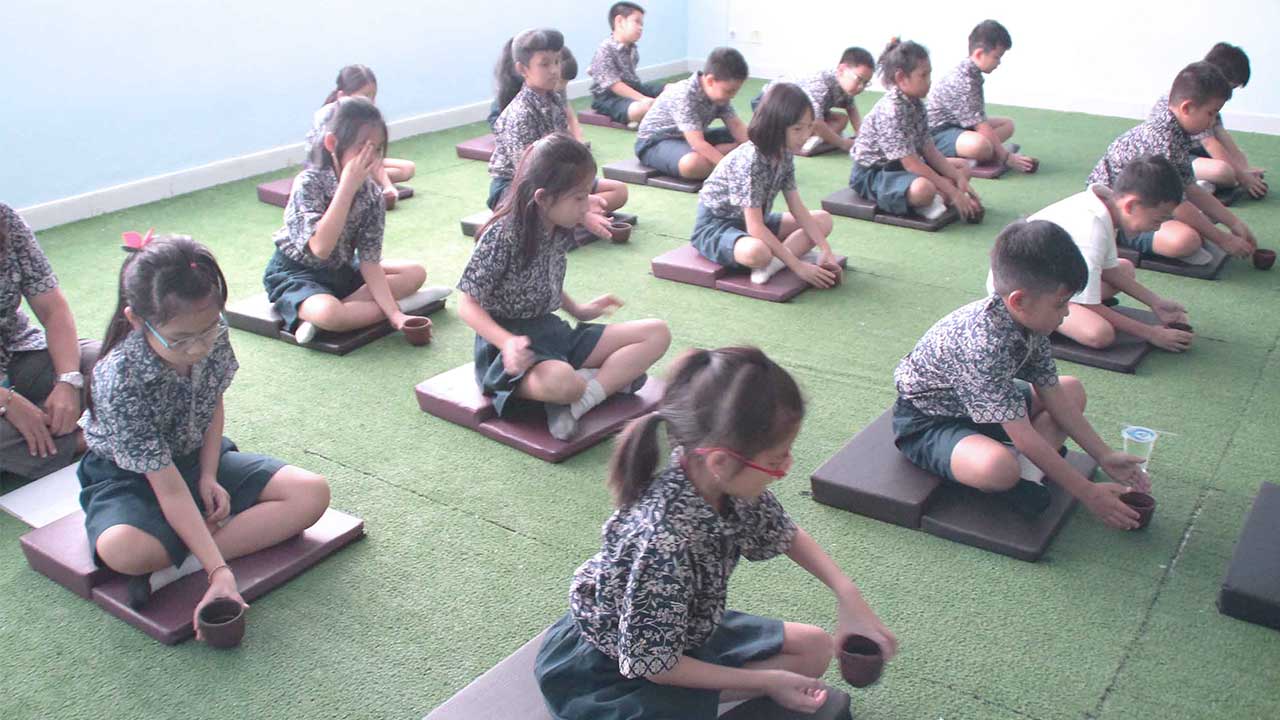With mindfulness as the anchor of the whole day activities, we bring our focus to our breath and the present moment. From mindful walking, mindful sitting to mindful games, all practising our ability to have quality attention in the here and now.